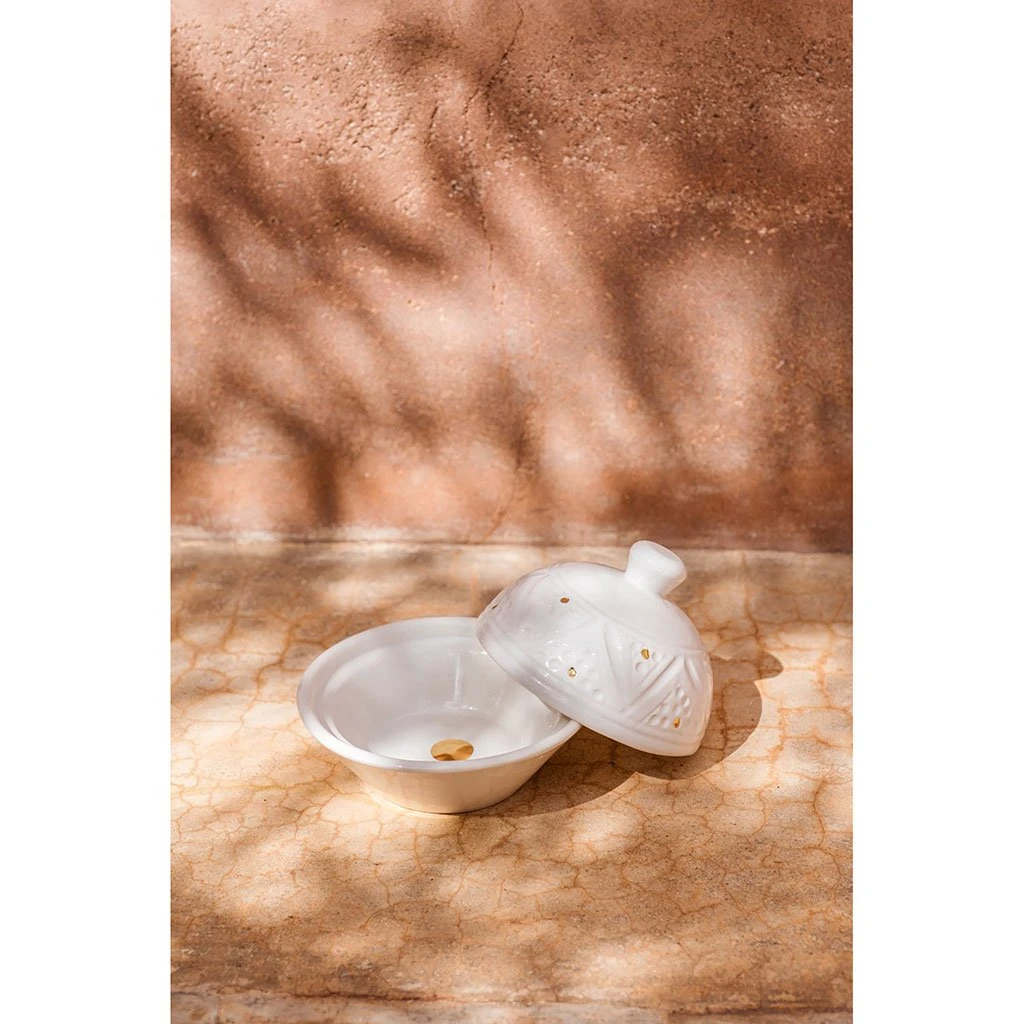 Venez découvrir notre Beurrier / boite à sucre empreintes blanc or d10xh9cm de la marque Chabi Chic à découvrir sur Fabrique de Styles.